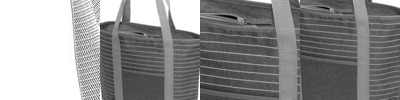 Unique lightweight tote with Gray stripes and accents that enhanced the heathered tonal base